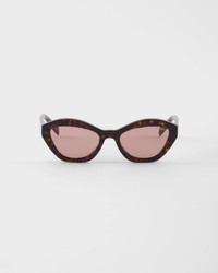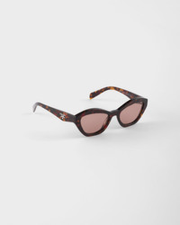 Acetate sunglasses with a feminine cat-eye silhouette. The geometric temples are emphasized by a refined play of bonded layers highlighting the iconic triangle logo in a contrasting color. - Product code: SPRA02_E17N_FE60B_C_052 - Recycled bio-acetate frame front - Color: Briarwood Tortoiseshell - Frame compatible with graduated lenses - 100% UVA / UVB protection - Standard Fit - Lens-nose-temple measurement: 52-19-140 mm - Article comes with dedicated packaging - Other available colors - Imported MATERIALS Acetate