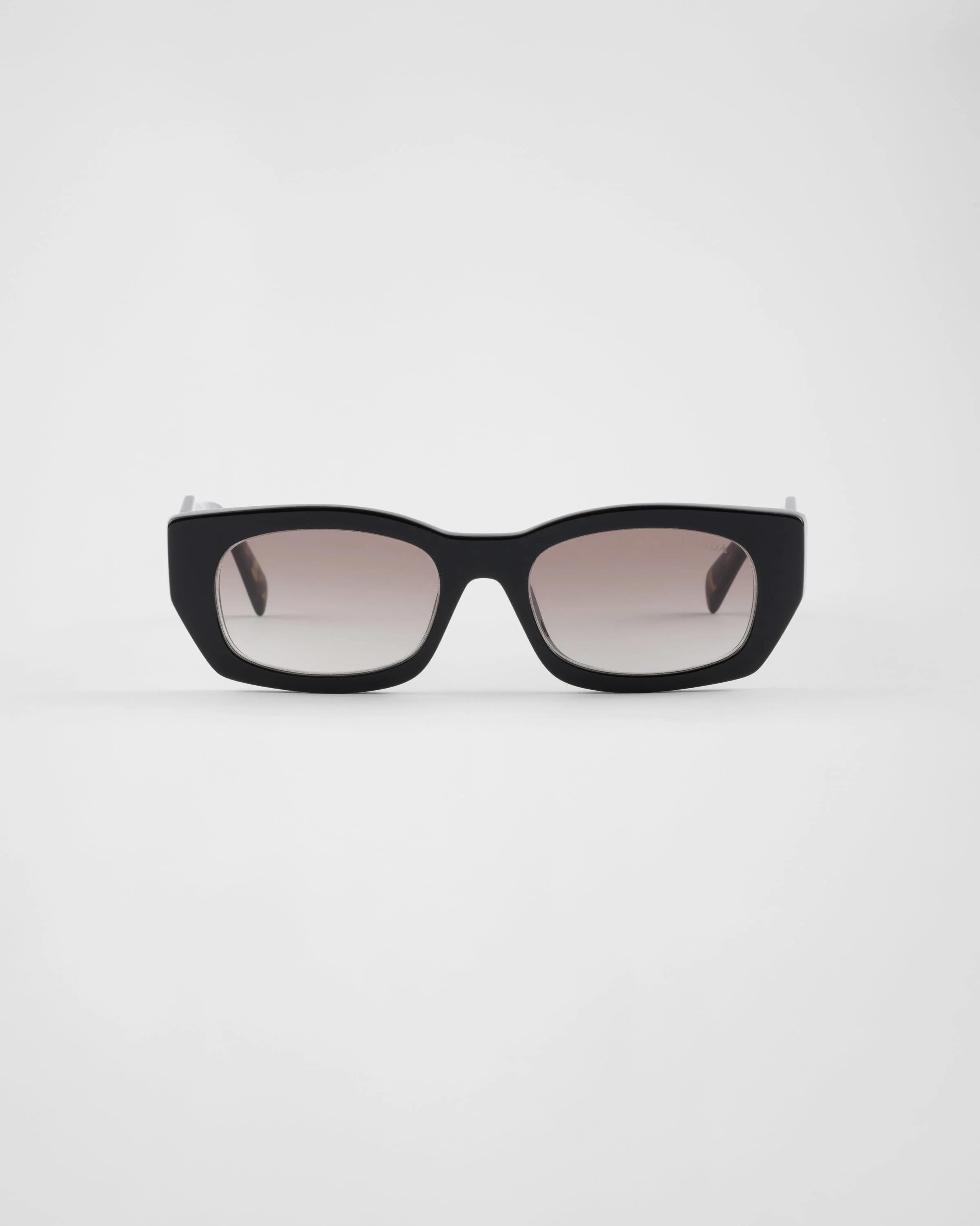 Rectangular acetate sunglasses with chunky volumes. The geometric temples are characterized by the refined color contrast that adds a sophisticated, contemporary touch. Prada lettering logo. - Product code: SPRB05_E389_F00A7_C_053 - Acetate frame front - Color: Black and tortoiseshell motif - Frame compatible with graduated lenses - 100% UVA / UVB protection - Standard Fit - Lens-nose-temple measurement: 53-19-140 mm - Article comes with dedicated packaging - Other colors available - Imported MATERIALS Acetate