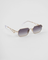 Metal sunglasses characterized by a narrow rectangular front with a bold attitude. The temples are embellished with the iconic triangle logo inspired by Prada jewelry. - Product code: SPRA51_EZVN_FE30C_C_058 - Metal frame front - Color: Pale Gold - Frame compatible with graduated lenses - 100% UVA / UVB protection - Adjustable nose pads suitable for any fit - Lens-nose-temple measurements: 58-17-140 mm - Article comes with dedicated packaging - Other colors available - Imported MATERIALS Metal