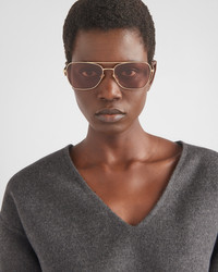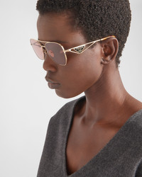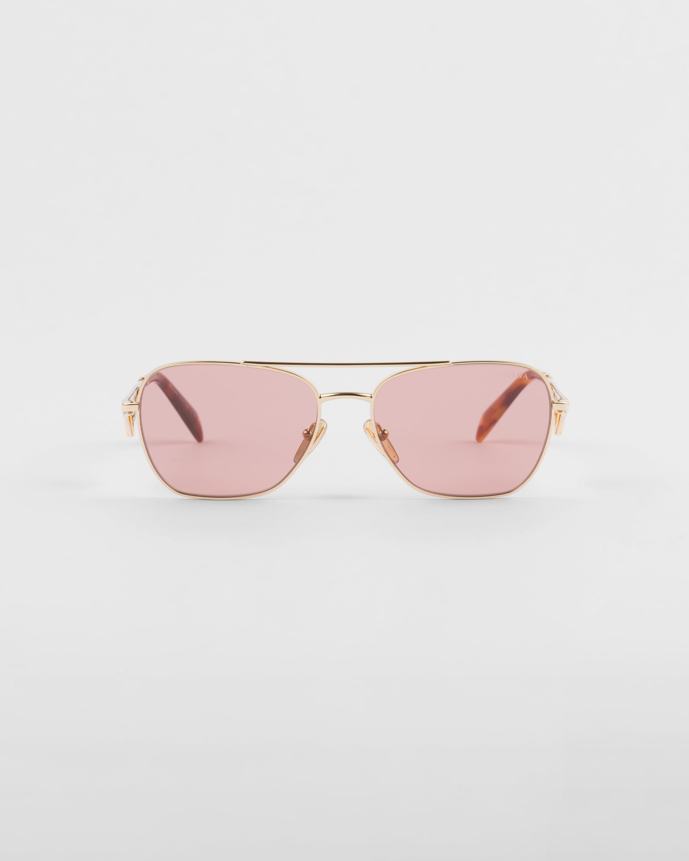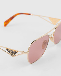 Metal sunglasses characterized by the large pilot front for contemporary elegance. The temples are decorated with the iconic triangle logo inspired by jewelry of the fashion house. - Product code: SPRA50_E5AK_FE08M_C_059 - Metal frame front - Color: Gold - Frame compatible with graduated lenses - 100% UVA / UVB protection - Adjustable nose pads suitable for any fit - Lens-nose-temple measurements: 59-17-140 mm - Article comes with dedicated packaging - Other available colors - Imported MATERIALS Metal