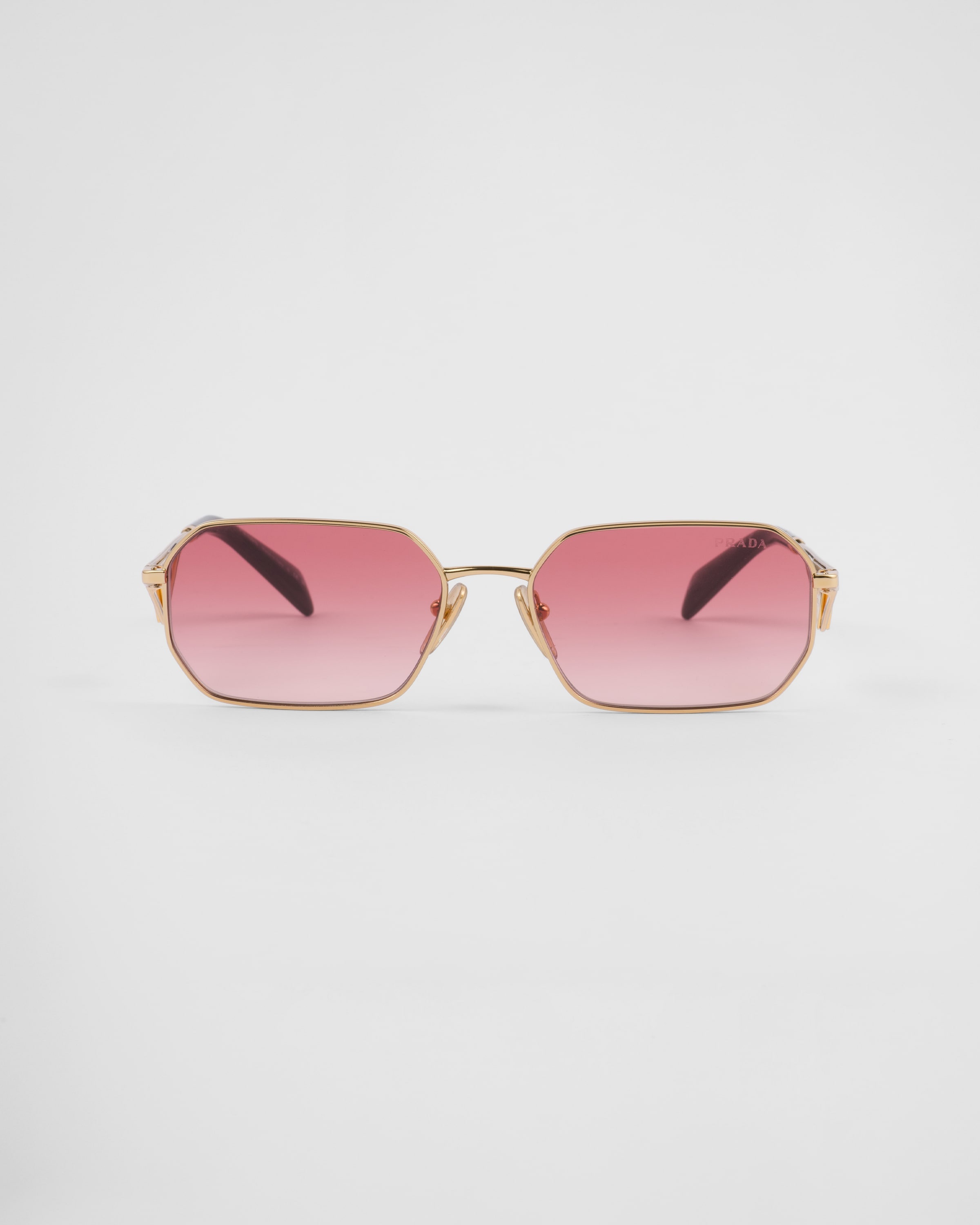 Metal sunglasses characterized by a narrow rectangular front with a bold attitude. The temples are decorated with the iconic triangle logo inspired by jewelry of the fashion house. - Product code: SPRA51_E5AK_FE40C_C_058 - Metal frame front - Color: Gold - Frame compatible with graduated lenses - 100% UVA / UVB protection - Adjustable nose pads suitable for any fit - Lens-nose-temple measurements: 58-17-140 mm - Article comes with dedicated packaging - Other available colors - Imported MATERIALS Metal