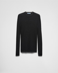 This crew-neck sweater reinterprets traditional knitwear in an innovative way with sleek lines and is made of superfine wool, a characteristic material used in Prada's most iconic knits. Superfine wool, the most valuable in the world, stands out for the fineness, extreme lightness, and exceptional length of the fibers, thanks to which it maintains its original shape over time. - Product code: P24R1V_11C8_F0002_S_232 - Long sleeves - Ribbed knit - Slim-fit silhouette - Ribbed knit crew neck - Raglan shoulder - Intarsia logo - Imported Height: 64cm MATERIALS Main material: 100% virgin wool