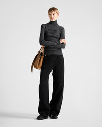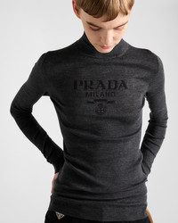 Sleek and timeless, this turtleneck sweater is made of superfine wool, a characteristic material of Prada's most iconic knitwear. Superfine wool, the most valuable in the world, stands out for the fineness, extreme lightness, and exceptional length of the fibers, thanks to which it maintains its original shape over time. - Product code: P26445_11C8_F0308_S_232 - Long sleeves - Ribbed knit - Slim-fit silhouette - Ribbed knit turtleneck - Raglan shoulder - Imported - The model is 179 cm tall and wears a size 38 Height: 64cm MATERIALS Main material: 100% virgin wool