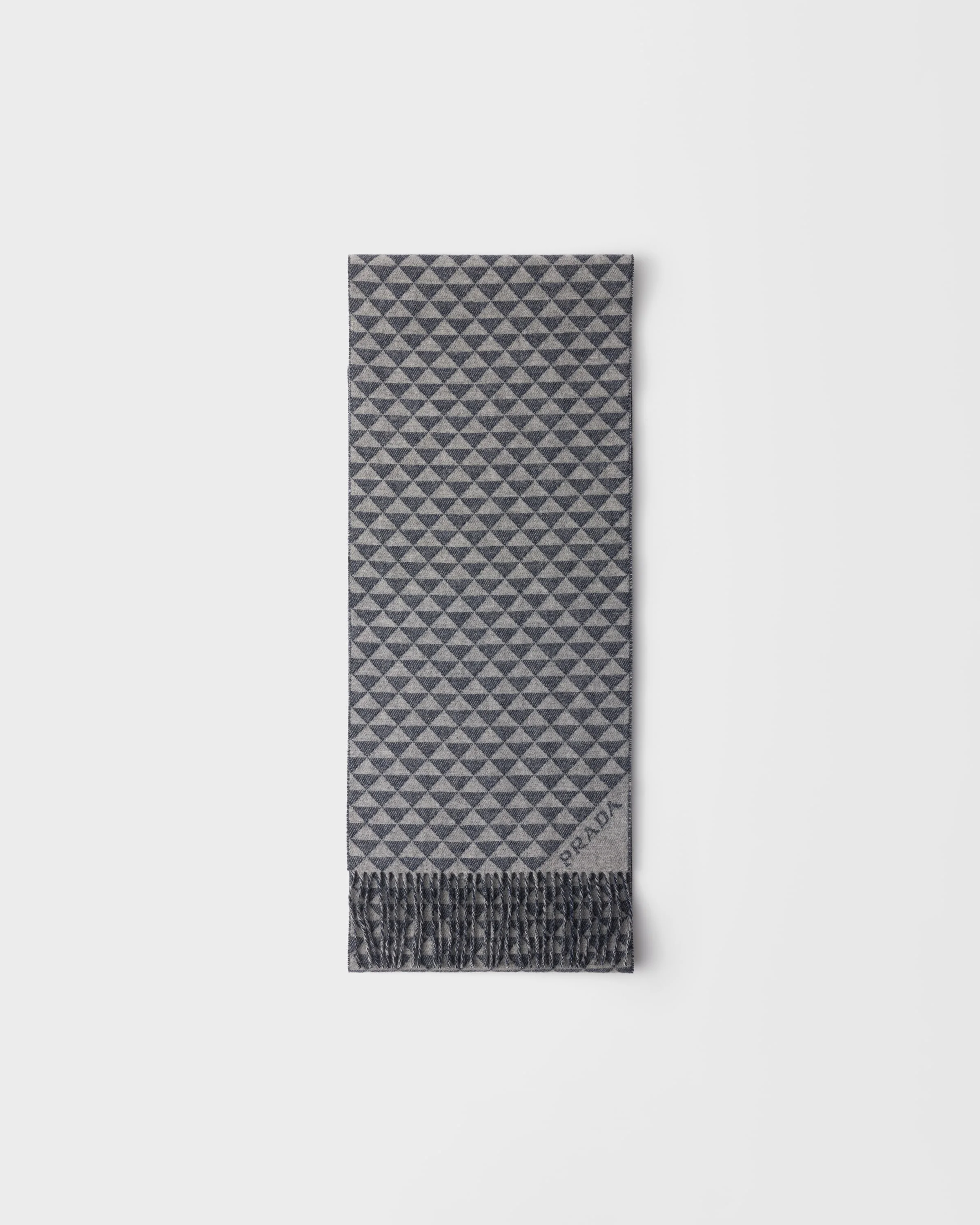 This modern and versatile scarf made of soft wool and cashmere has a reversible design animated by the iconic Symbole geometric motif. The jacquard logo, repeated on opposite corners of the scarf, adds a distinctive touch to the accessory. - Product code: 1FS056_2CON_F005R - Jacquard logo - Jacquard knit - Fringe on two sides - 90% wool 10% cashmere - Imported Height: 190cm Width: 28cm MATERIALS Main material: Wool, cashmere