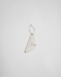 Iconic and sleek, the triangle logo is the protagonist of a new line of jewelry made of 925 sterling silver that reinterprets punk influences in a modern way. Prada's historic symbol decorated with enamel defines this single earring. - Product code: 1JO718_2DSP_F0009 - 925 sterling silver with enamel - Palladium finish - Visible logo - For pierced ears - Left ear - Imported Height: 3.2cm MATERIALS Main material: 925 silver