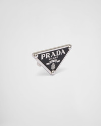 Prada's historic symbol decorated with enamel defines this single earring worn on the left. Iconic and sleek, the triangle logo is the protagonist of a new line of jewelry made of 925 sterling silver that reinterprets punk influences in a modern way. - Product code: 1JO722_2DSP_F0002 - 925 sterling silver with enamel - Palladium finish - Visible logo - Clip back earring - Left ear - Imported Width: 3.2cm MATERIALS Main material: 925 silver