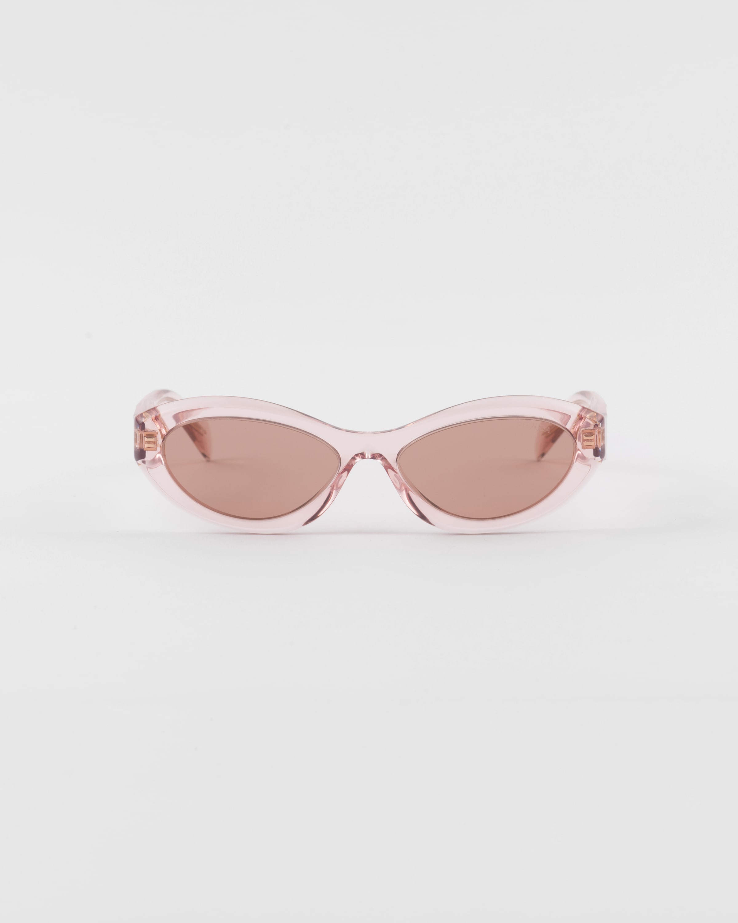Sunglasses with an acetate frame front characterized by sinuous and slightly faceted rims. The slender temples are emphasized by refined three-dimensional crafting that iconographically interprets the maison's triangle logo. - 商品品番: SPR26Z_E19Q_FE10D_C_055 - Acetate frame front - Color: Transparent Peach - Frame not compatible with graduated lenses - 100% UVA / UVB protection - Standard fit - Lens-nose-temple measurements: 55-16-145 mm - Article comes with dedicated packaging - Other colors available - インポート MATERIALS Acetate