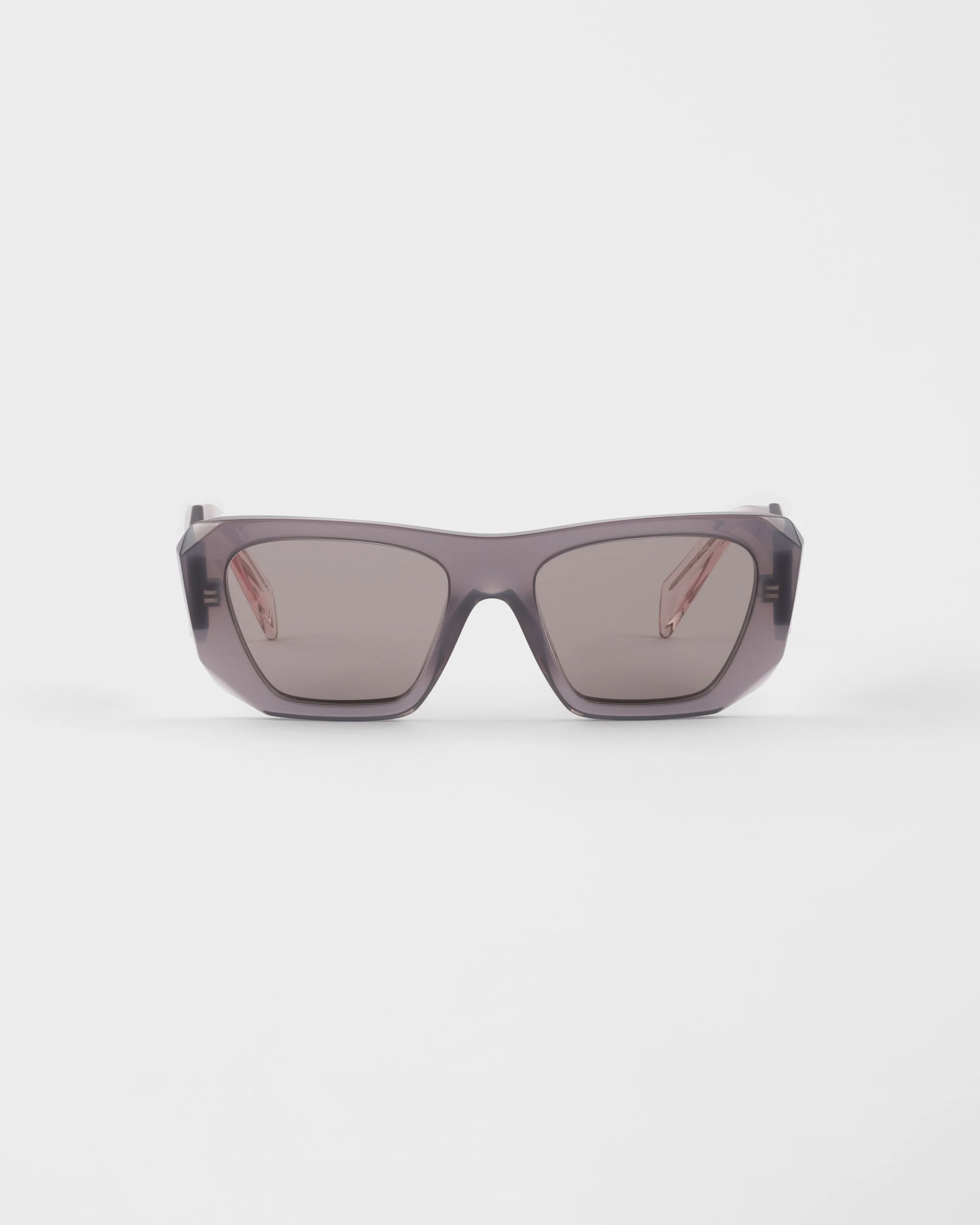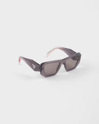 An oversized design and large volumes define these acetate sunglasses. The frame is characterized by the geometric front and sharply beveled outer rims. The three-dimensional workmanship on the temples is decorated with an iconographic interpretation of the traditional Prada triangle logo. - Product code: SPRB18_E20F_FE80Q_C_053 - Recycled bio-acetate frame front - Color: Gray + Gradient Gray to Pink - Frame not compatible with graduated lenses - 100% UVA / UVB protection - Standard Fit - Lens-nose-temple measurement: 54-20-145 mm - Article comes with dedicated packaging - Other colors available - Imported MATERIALS Acetate