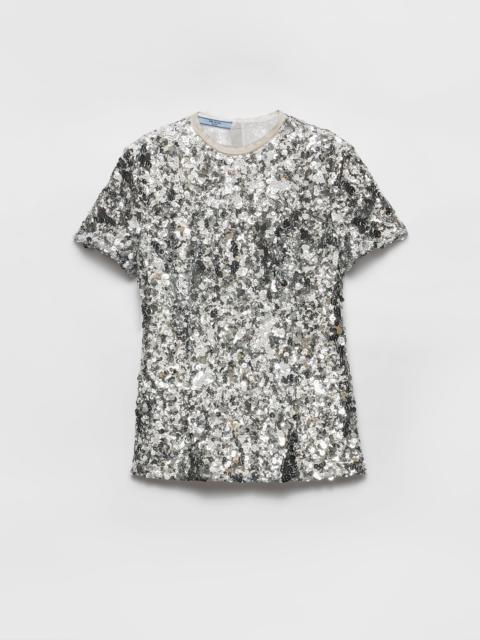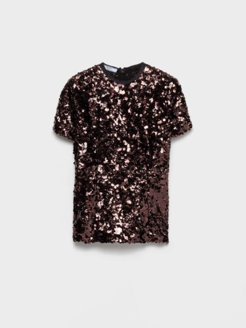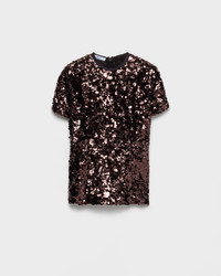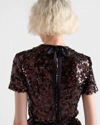 A unique texture with a liquid, dynamic effect defines this elegant top, crafted with refined artisanal techniques. The streamlined design is enhanced with hand-embroidered sequins that create a luminous and sophisticated surface. - Product code: P974MR_176A_F0051_S_OOO - Slim fit - Lined garment - Crew neck - Back zip closure - Short sleeves - Straight hem - Imported - The model is 180 cm tall and wears a size 38 Height: 60cm MATERIALS Main material: 100% polyamide - 100% polyester