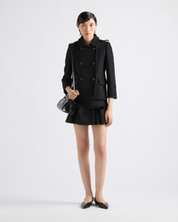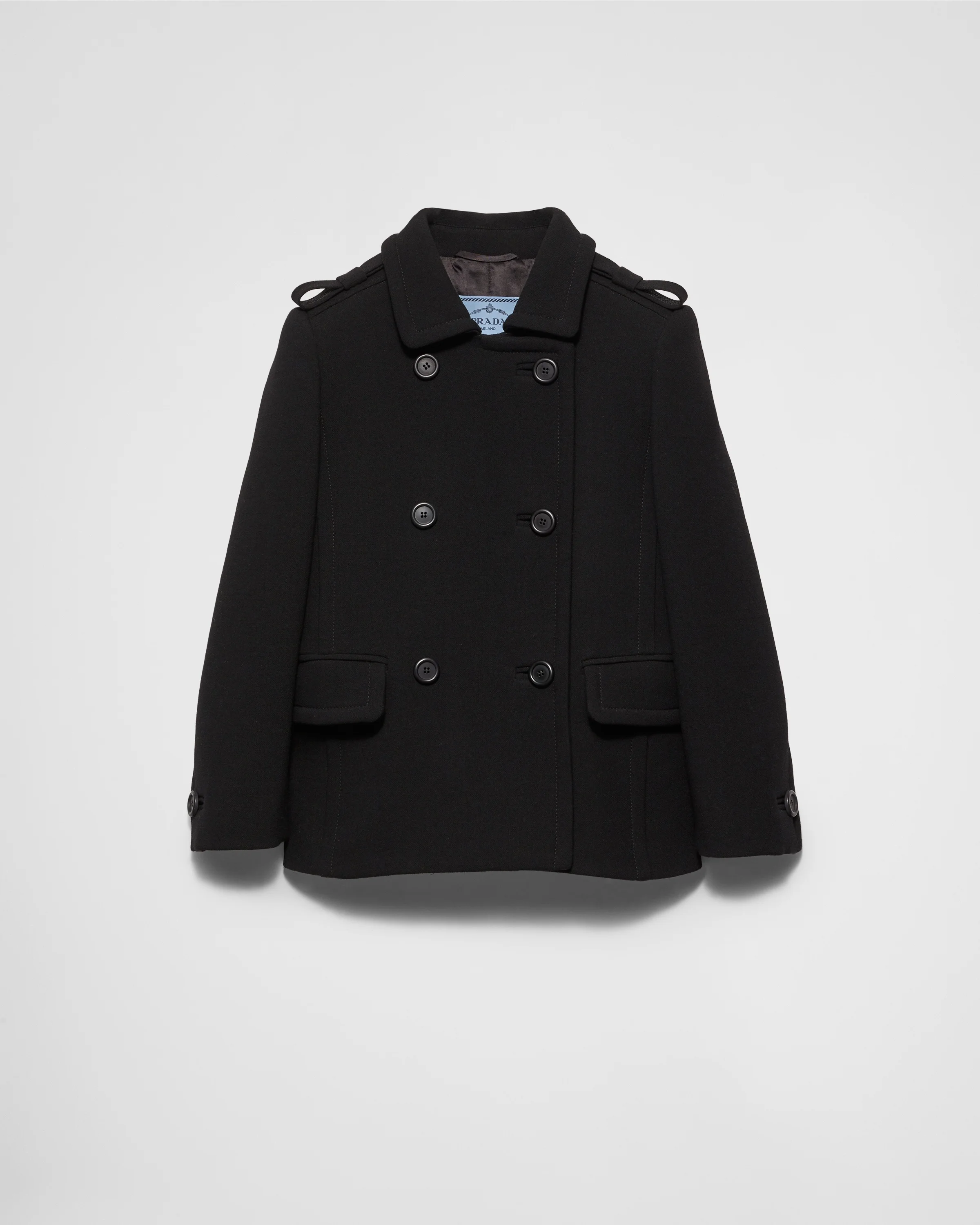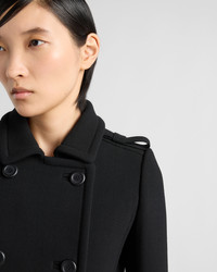 Romantic, unexpected details add a soft touch to this double-breasted jacket with a rigorous cut. Epaulettes, transformed into elegant bows, embellish the slim silhouette with three-quarter sleeves. - Product code: P530P_S31_F0002_S_OOO - Slim fit - Lined - Collar - Front button closure - Three-quarter sleeves with slits and buttons - Flapped welt pockets - Three-dimensional fabric triangle logo - Fabric bows on the shoulders - Imported - The model is 178 cm tall and wears a size 38 Height: 58cm MATERIALS Main material: 100% virgin wool