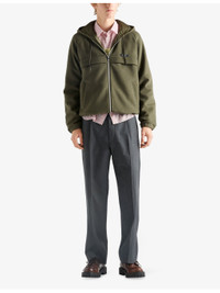 PRODUCT DETAILS - Prada wool trousers - 100% wool - Button, hook-and-eye and zip-fly fastening - Regular fit, mid-rise, straight leg, structured waistband with belt loops, slip pockets at front, pressed centre creases - Dry clean only - Made in Italy - Model is 6ft 2in/1.88m and wears a size UK 40 - Lightweight, non-stretch Ref: R04565174