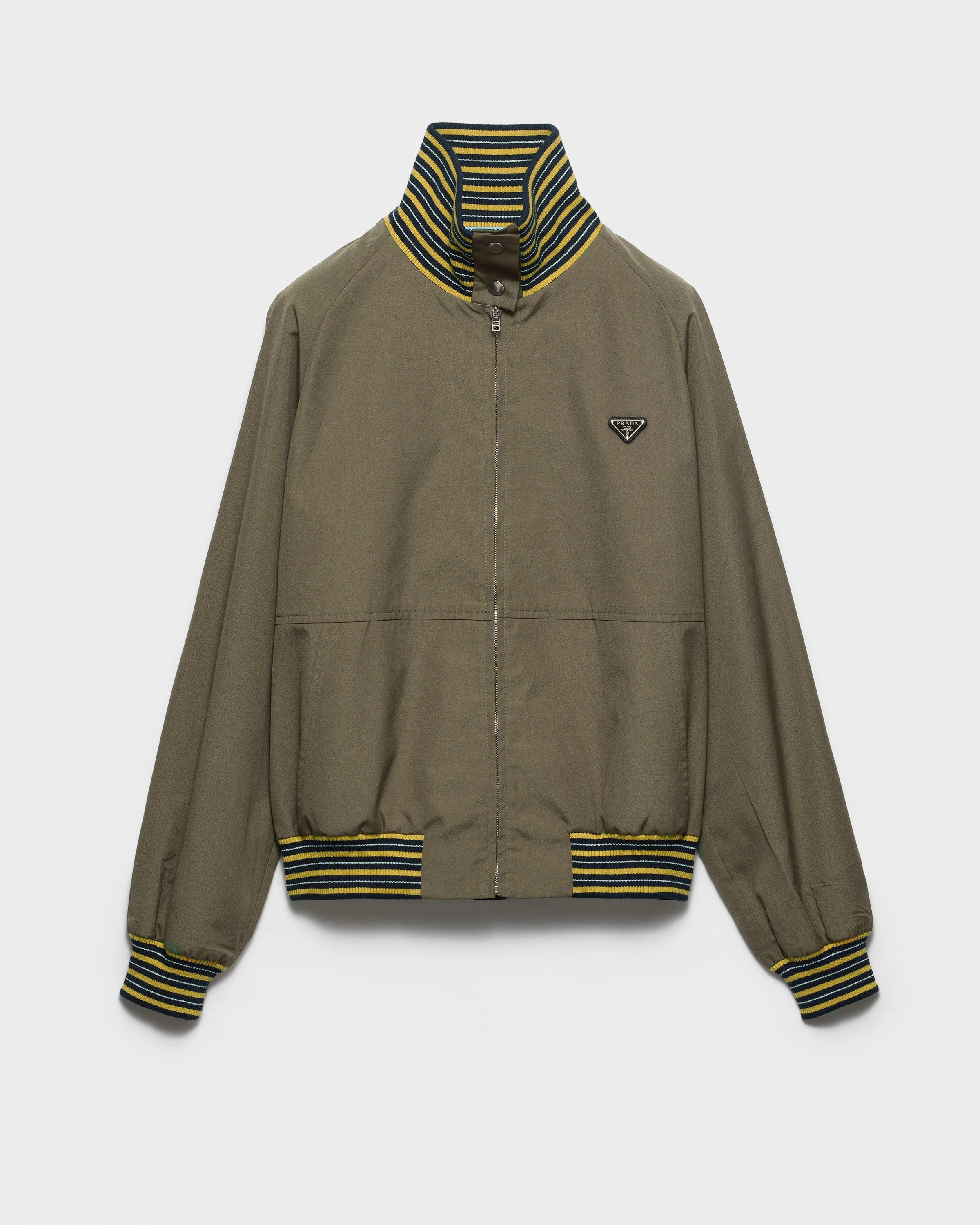 The play of contrasts between light poplin and textured knit gives this jacket a multifaceted sartorial soul. The garment is decorated with the distinctive triangle logo. - Product code: P8032_187P_F0161_S_OOO - Knit turtleneck, cuffs and hem - Zipper closure - Pouch pockets - Unlined - Metal triangle logo - Imported - The model is 178 cm tall and wears a size 38 Height: 60cm MATERIALS Main material: 35% Cotton, 65% Polyester