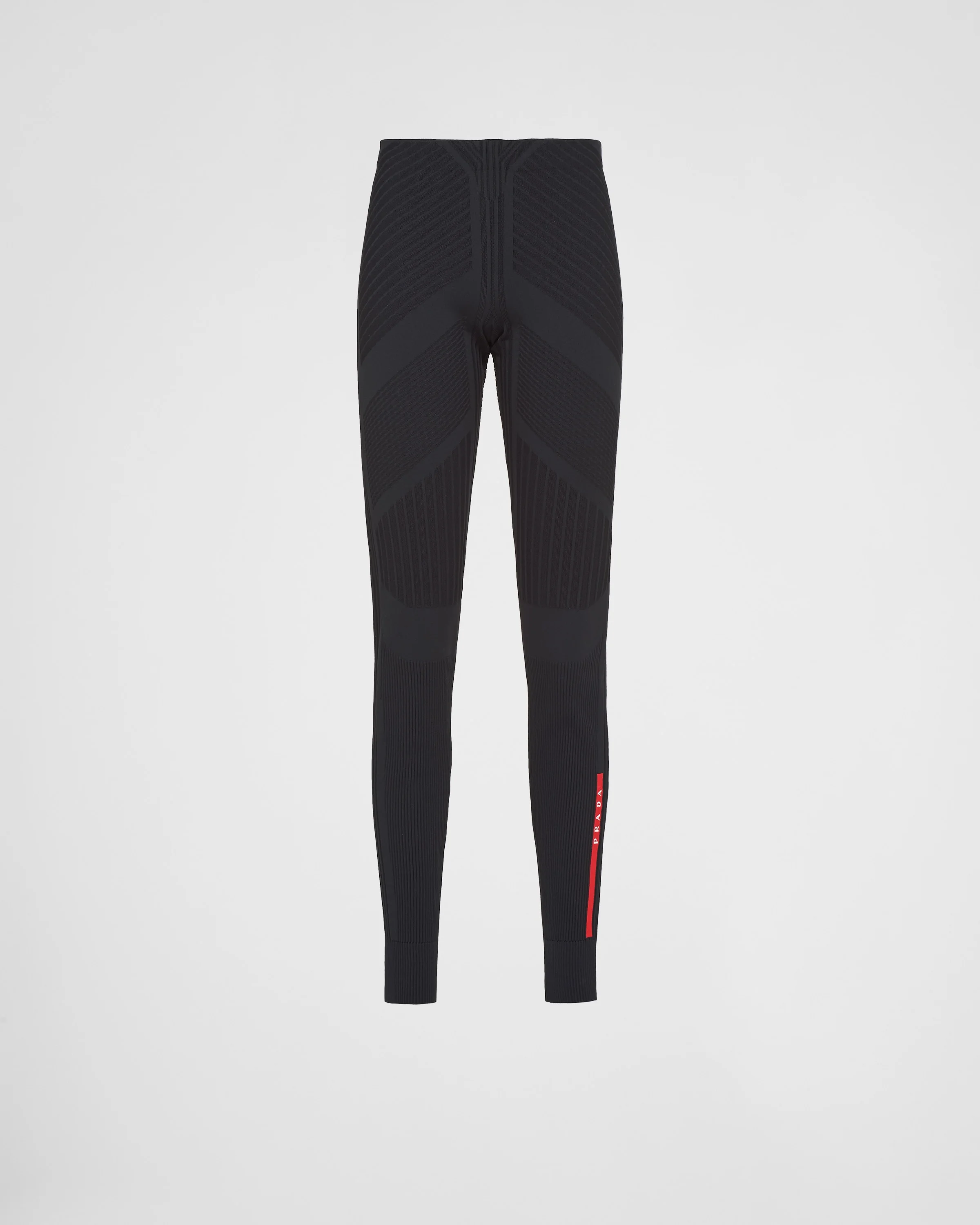 These high performance sports leggings feature a pique motif with contoured lines. Made from high quality post-consumer recycled Japanese polyester and Lycra yarns, Tech Rec Nylon is a naturally stretchy, lightweight and water-repellent knit. The emblematic Prada Linea Rossa logo adds a note of color on the hem. This product does not contribute to the SEA BEYOND educational program. - Product code: 122048_1X79_F0002_S_192 - Tech Rec Nylon F. 18 made of post-consumer recycled polyester - Pique motif - Slim fit - Embroidered logo - Imported Height: 100cm MATERIALS Nylon