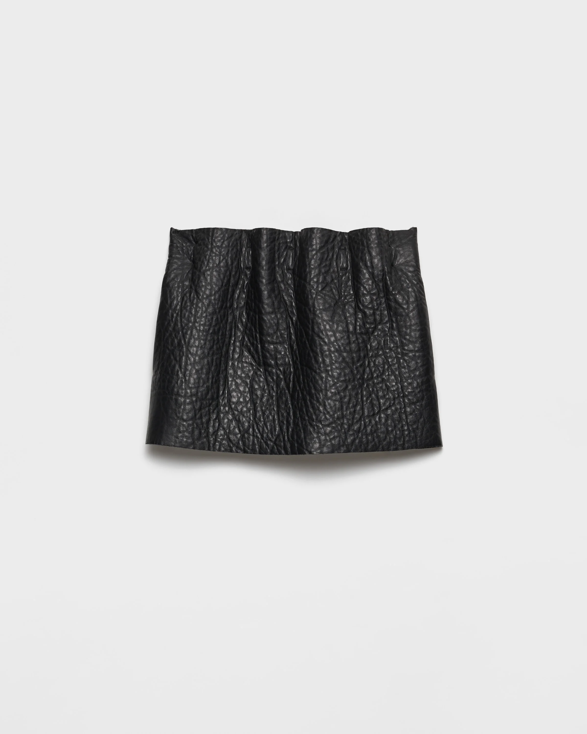 While minimalistic in design, this skirt is elevated by refined artisanal treatments that enrich nappa leather with a unique, rich texture featuring an irregular grain. The elastic waistband adds soft volume, further enhancing the sophistication of this piece. - Product code: 51927_18A7_F0002_S_OOO - Unlined garment - Inseam pockets - Waist with internal elastic - Imported - The model is 178 cm tall and wears a size 38 Height: 35cm MATERIALS Main material: Lambskin