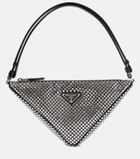 Prada’s coveted logo plate is mirrored by this triangular-shaped crystal-adorned pouch. Set to be a wishlist favorite, the iconic silhouette features a delicate leather shoulder strap and is finished with a silver-toned zip. Product Details - Made in Italy - Comes with dust bag - Designer color name: Cristal - Leather shoulder strap - Closure: zipped top - Material: fabric, crystals - Internal details: fabric lining - Comes with a box - Trim: leather - Item number: P00696197 Size & Fit - Height 14cm-5.5" - Max. width 26cm-10" - Max. depth 6cm-2.5" - Min. length shoulder strap 42cm-16.5" - Max. length shoulder strap 76cm-30" - Suitable for medium to large smartphones (e.g. iPhone 13/15 Pro, Galaxy S23, Pixel 8 Pro)