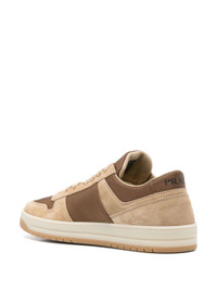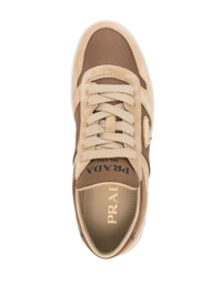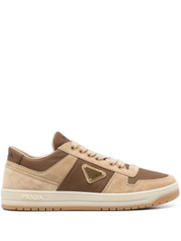 brown/beige calf suede ECONYL® front lace-up fastening panelled design branded heel counter raised logo detail logo-print tongue enamel triangle logo almond toe branded insole rubber sole This piece comes complete with a protective dust bag. Size & Fit Model Measurements: Bust: 0cm Height: 0cm Hips: 0cm Waist: 0cm HEEL: 3cm Sole height: 2.5cm Fabric and Care Designer Style ID: 1E792MFD7RD030 Designer Colour: F0J25 ECRU CORINTO Composition: Sole: Rubber 100%; Outer: Calf suede 100%, Econyl® 100%; Lining: Calf leather 100%Made in Italy