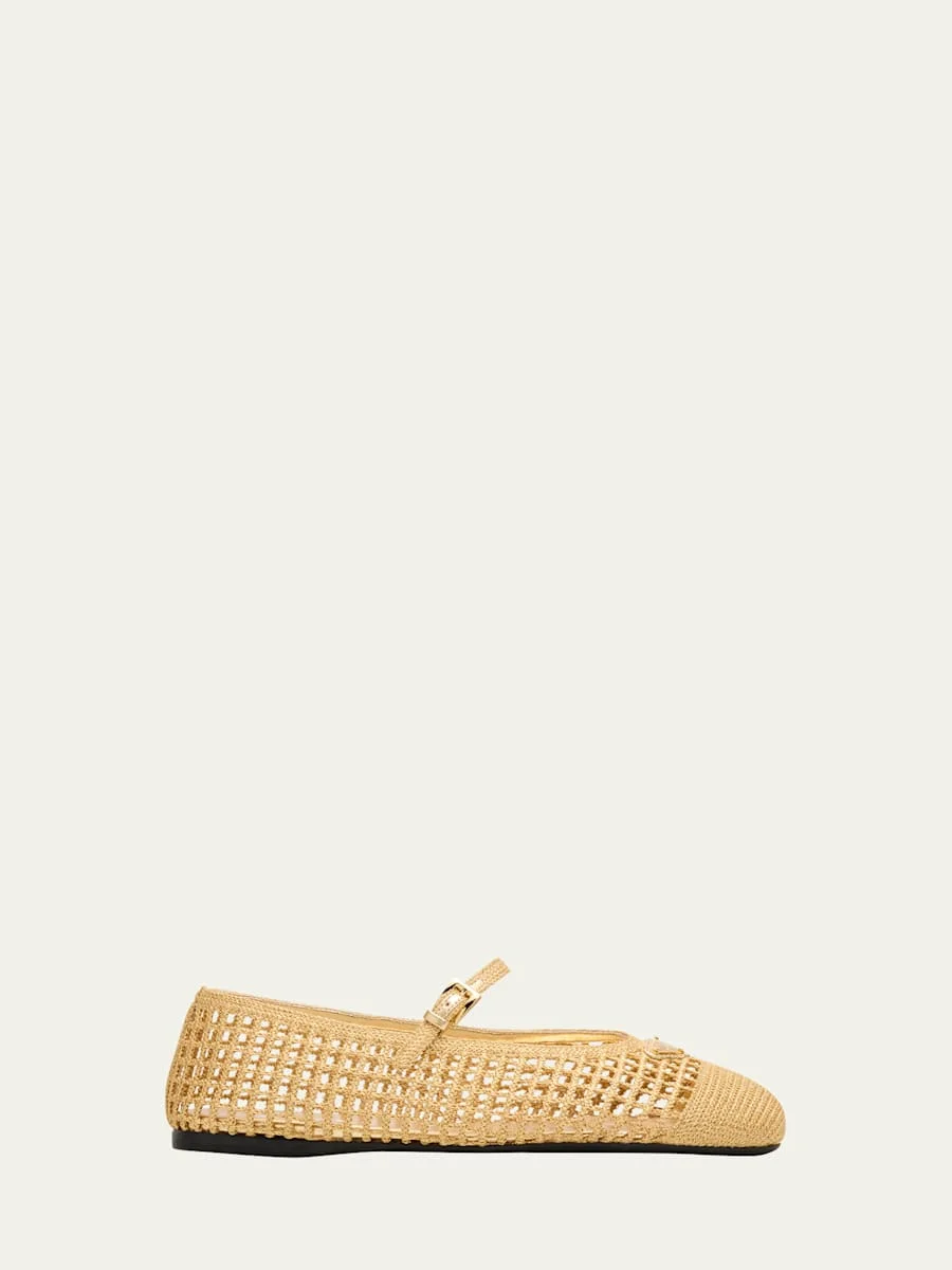 Triangle Logo Metallic Crochet Mary Jane Ballerina Flats