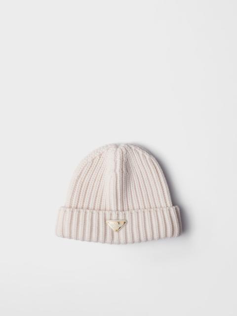 This soft, warm melange wool beanie is decorated with the emblematic geometric shape of the enameled metal triangle logo. - Product code: 1HC390_2DZL_F0002 - Enameled metal triangle logo - Imported MATERIALS Main material: Virgin wool