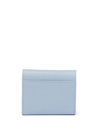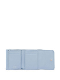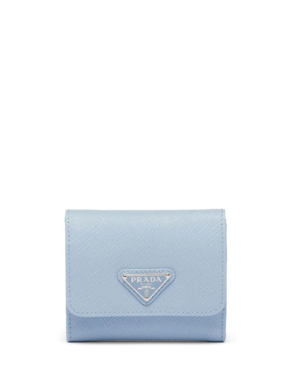 Saffiano leather wallet baby blue leather enamel triangle logo press-stud fastening card slots partitioned compartment internal logo stamp silver-tone hardware Composition Outer: Leather 100%
