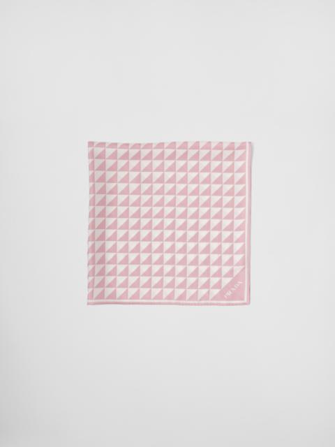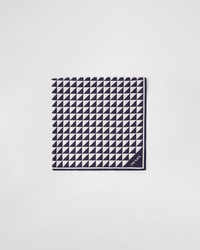 The triangle, Prada's iconic logo since 1913, is reimagined in always new ways, accenting this twill scarf with a harmonious color contrast. - Product code: 1FF001_2DTP_F057L - Triangle print - Printed lettering logo - Imported Height: 90cm Width: 90cm MATERIALS Main material: Silk