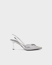 Mesh fabric slingback pumps