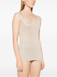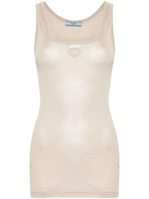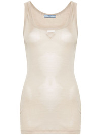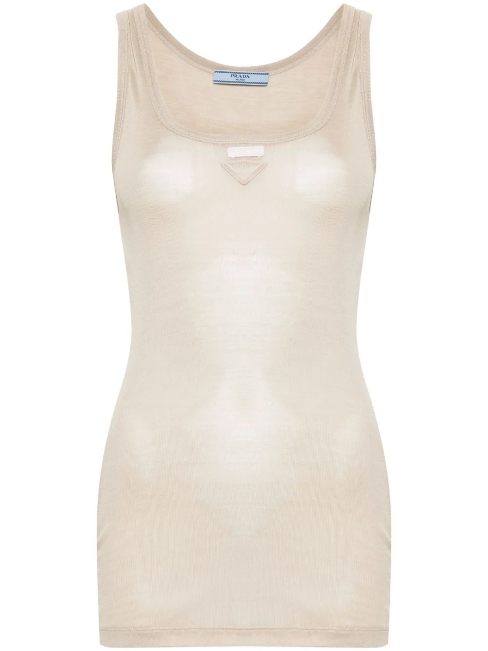 triangle-logo tank top Highlights - Beige - Silk - Fine knit - Round neck - Sleeveless - Logo patch at the chest - Triangle logo - Straight hem Composition Silk 100% SIZE & FIT Model measurements Height 5 ft 10 in(1.77 m) Bust/Chest 33.85 in(86 cm) Hips 37 in(94 cm) Waist 26.37 in(67 cm) FittingInformation Designed for a close fit throughout Made from a lightweight non-stretch fabric, this piece offers minimal elasticity when worn This piece fits true to size – take your usual size
