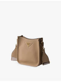 PRODUCT DETAILS - Prada leather bag - 100% leather - Magnetic closure - Embossed logo at front, logo script hardware, adjustable woven strap, one main compartment, grained texture - Height 20cm, width 19cm, length 6cm - Specialist leather clean - Made in Italy Ref: R04459087