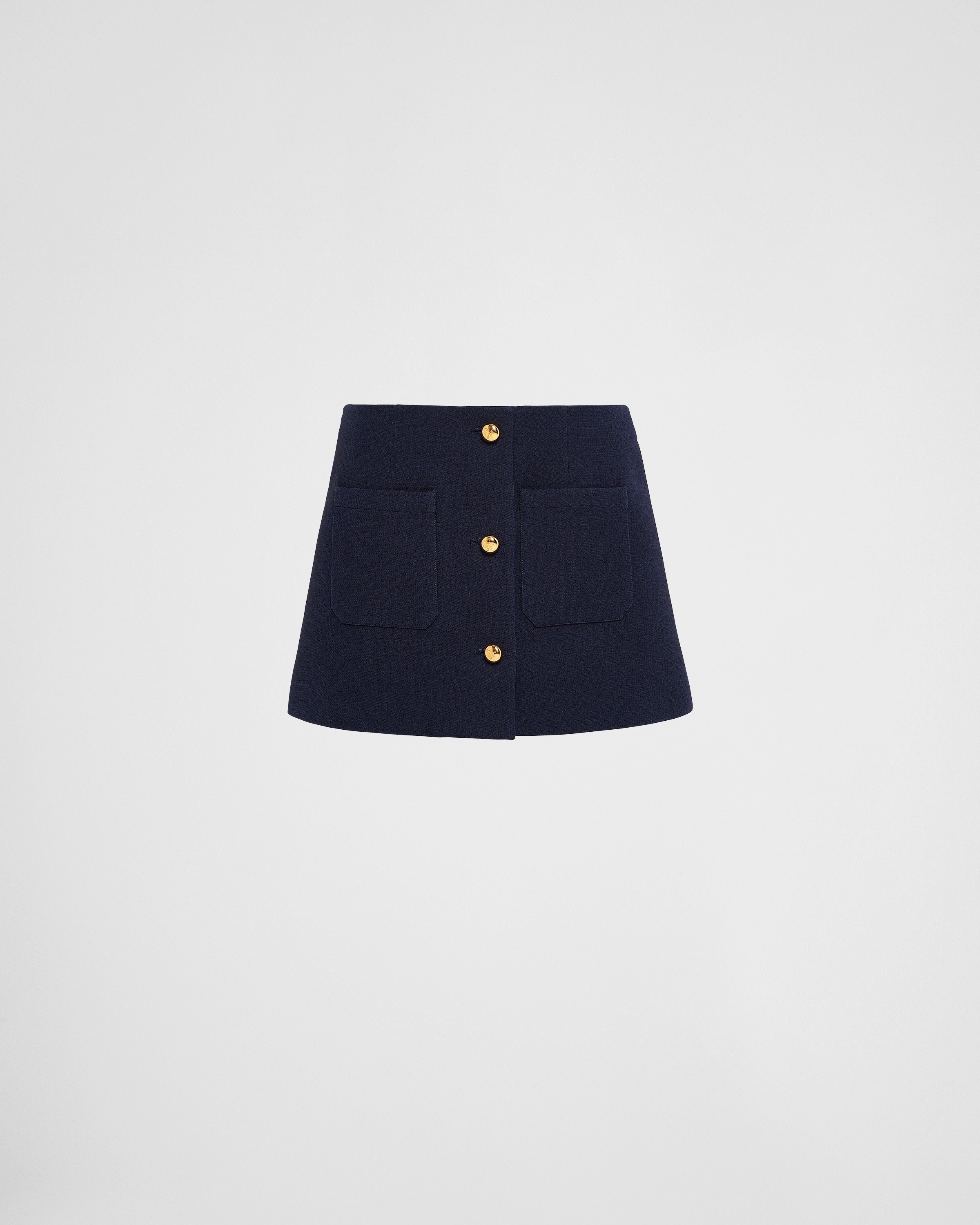 This miniskirt with classic elegance and refined details is characterized by its sleek, slightly flared lines. The style with front patch pockets is embellished with a refined logo-engraved button closure. - 商品品番: P128J_1EVU_F0008_S_OOO - Mini silhouette - Lined garment - Front closure with logo-engraved buttons - Patch pockets - インポート - The model is 180 cm tall and wears a size 38 - 高さ: 38cm