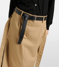 Belted cotton twill pencil skirt