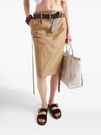 beige cotton twill weave pleat detailing pencil silhouette belt loops detachable waist belt hook and zip fly fastening two side slash pockets two rear welt pockets rear slit straight hem - Color: BROWN - Made in: Italy - Designer Style ID: P185KK S OOO 14ZG F0065 Composition and care Cotton: 100.0%
