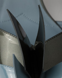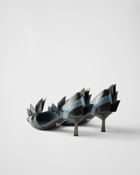 Bold and free creativity is expressed in the new Prada shoe collection through 3D details that create architectural shapes. - Product code: 1I971N_05G_F0XX8_F_B055 - Screen-printed triangle logo - Leather sole with rubber heel tip and metal lettering logo - Varnished heel, height 55 mm - Imported MATERIALS Main material: Calfskin