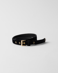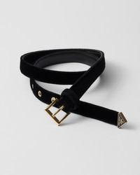 This refined belt, characterized by the elegant touch of velvet, is completed with a sleek gold-toned metal buckle and embellished with the iconic triangle logo. - 商品货号: 1CC624_068_F0002 - Metal buckle - Enameled metal triangle logo - 产品标签信息 高度: 2.2cm MATERIALS Leather