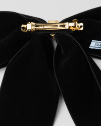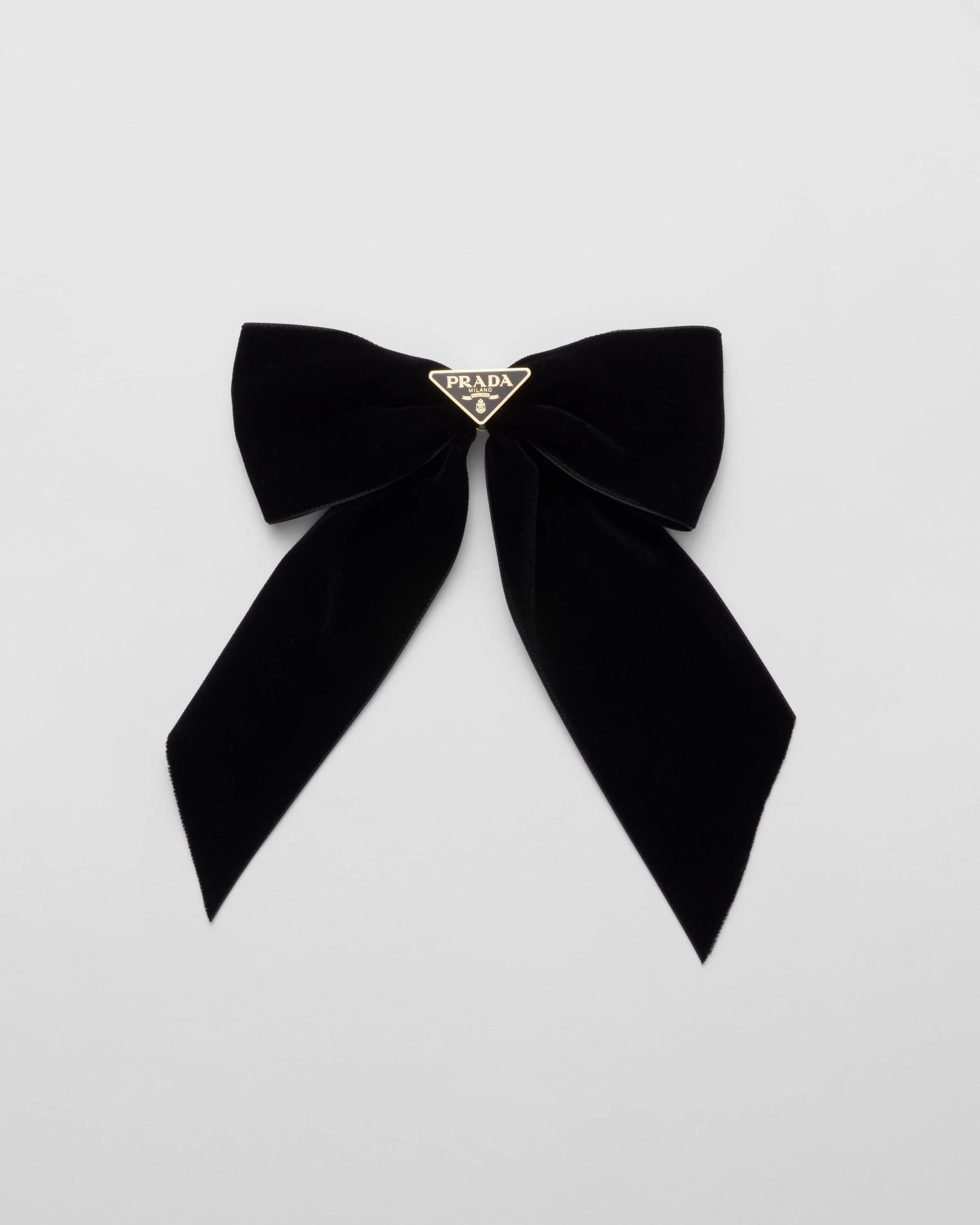 This hair clip with soft velvet bow is embellished with the enameled metal triangle logo. - Product code: 1IF199_068_F0002 - Clip on the back - Enameled metal triangle logo - Hypoallergenic and nickel-free materials - Imported Height: 7.5cm Width: 18cm MATERIALS Main material: Polyamide rayon