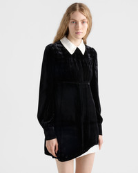 Bon ton allure meets the rich texture of velvet in this mini-dress with sculpted lines. Retro atmospheres mix with cinematic references to define a dynamic design with movement as suggested by the asymmetrical hem. - Product code: P3R03_178Y_F0002_S_OOO - Flared fit - Lined garment - Baby collar - Center back zipper closure - Sleeves with shirt cuffs - Asymmetrical turn-up hem - Imported - The model is 180 cm tall and wears a size 38 Height: 80cm MATERIALS Main material: 30% cupro 70% viscose