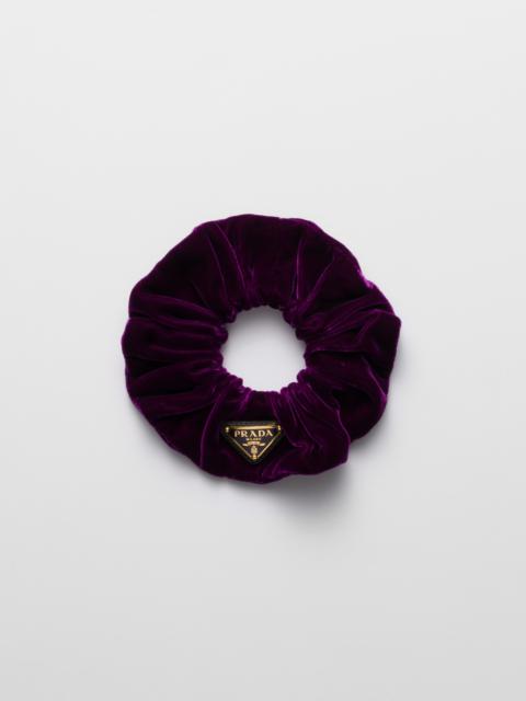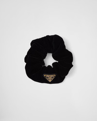 This scrunchie with sophisticated and feminine charm is emphasized by the soft texture of velvet and decorated with the iconic enameled metal triangle logo. - Product code: 1IF015_068_F0002 - Enameled-metal triangle logo - Imported Height: 5cm MATERIALS Main material: Cupro viscose