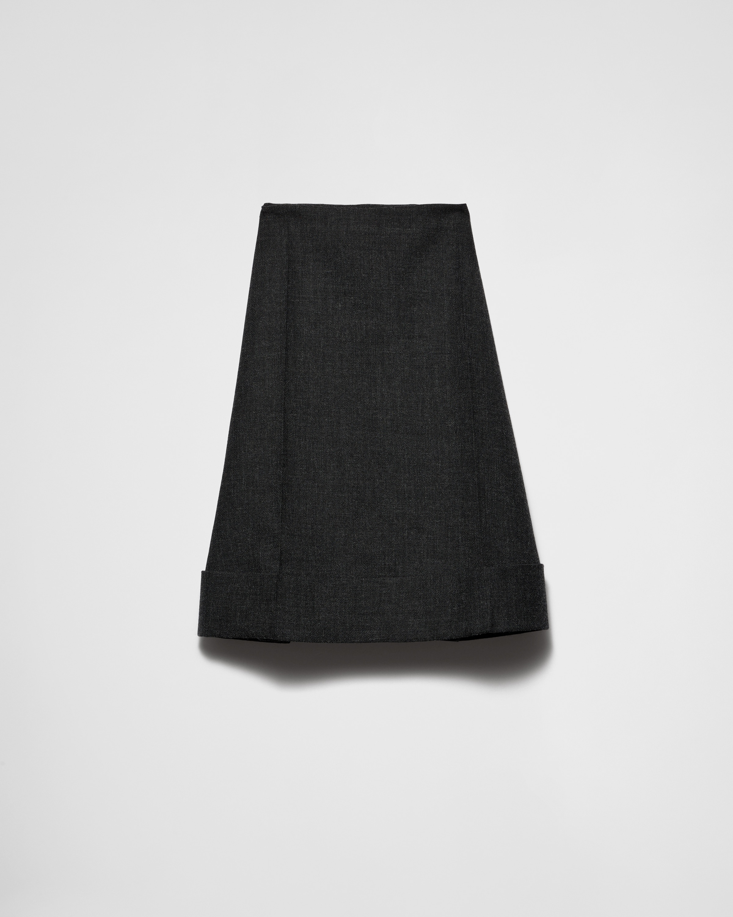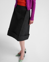 Modernist geometric shapes design the silhouette of this midi-skirt with flared lines, a design with dualistic details blending sartorial rigor and sophisticated femininity. - Product code: P101Y_15UW_F0308_S_OOO - Flared fit - Lined garment - Side zipper closure with hook - Imported - The model is 178 cm tall and wears a size 38 Height: 72cm MATERIALS Wool