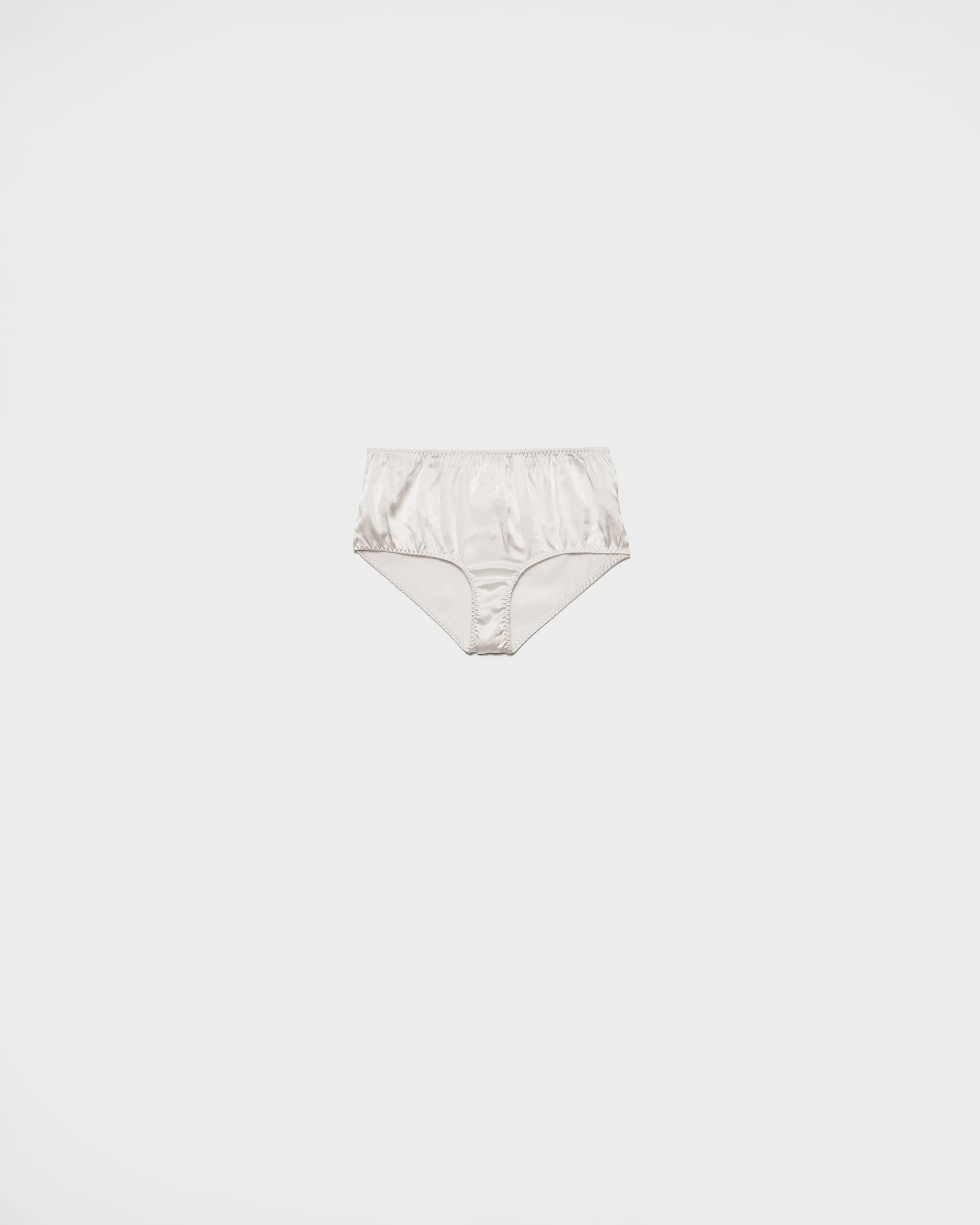 These satin briefs with vintage allure are completed with the iconic enameled metal triangle logo. - Product code: SP6616_17MZ_F0082_S_OOO - Briefs fit - Enameled metal triangle logo - Imported - The model is 176 cm tall and wears a size 38 MATERIALS Main material: 100% silk