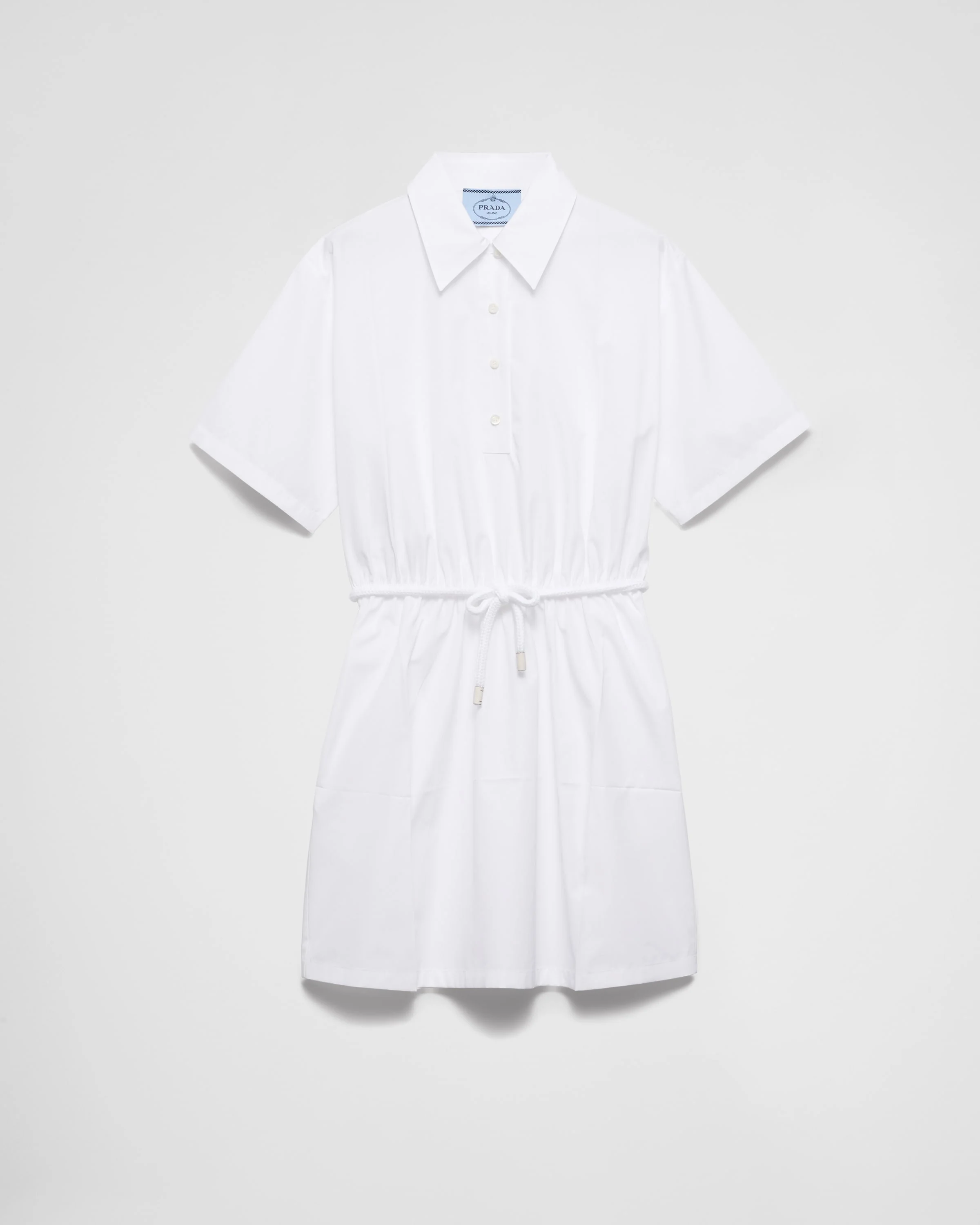 The emblematic codes of nautical style reinterpreted in a contemporary way inspire the design of this poplin dress. The loose fit with shirt collar is characterized by the cord detail that defines the waist. - Product code: P3O94C_1XV2_F0009_S_OOO - Loose fit - Unlined garment - Shirt collar - Front button closure - Short sleeves - In-seam pockets - Fabric triangle logo - Straight hem - Drawstring waist with cord - Imported - The model is 176 cm tall and wears a size 38 Height: 83cm MATERIALS Main material: 100% cotton