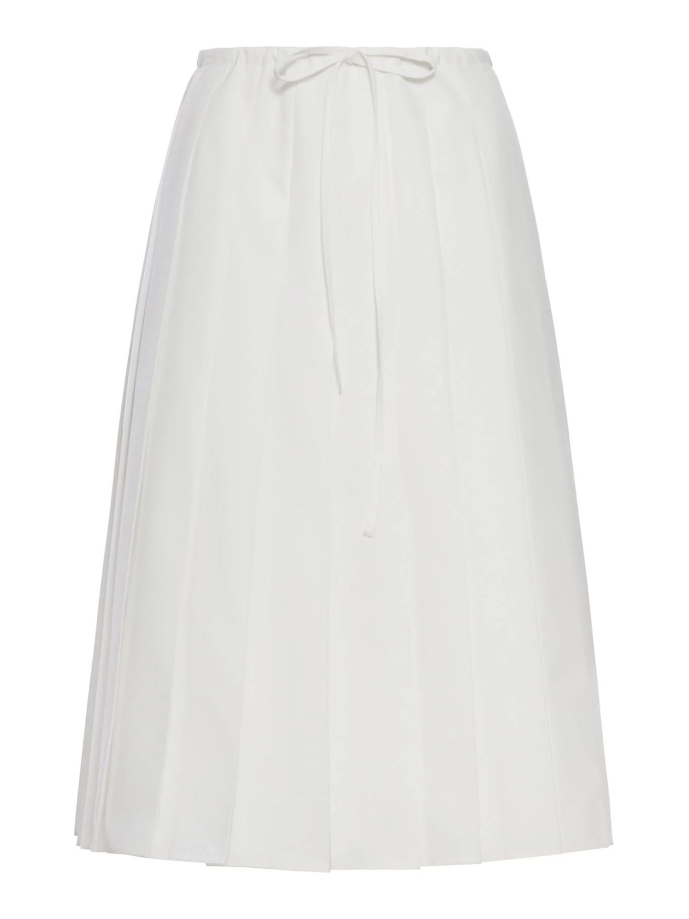 - Elasticated waist with drawstring - Pleated fabric - Metal logo plaque on the back - Midi length - Color: White Made in Italy Composition: Cotton 100% popeline Color code: F0009 WHITE P145VXSOOO187P