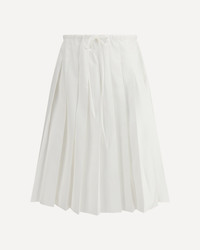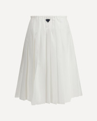 The pleated jersey Skirt by Prada blends lightness with subtle retro inspiration, defined by precise pleats and a naturally fluid movement. Crafted from lightweight jersey and left unlined to enhance its softness, it features a front tie closure that adds a refined, understated detail. The fabric triangle logo with sartorial label finishes the piece with the maison’s signature touch. DETAILS - Sku: P145VXSOOO187P_F0009 - Season: SS26 - Fit: Regular - Composition: GENERAL 76% Cotton 24% Polyester - MADE IN ITALY