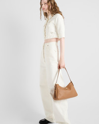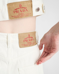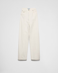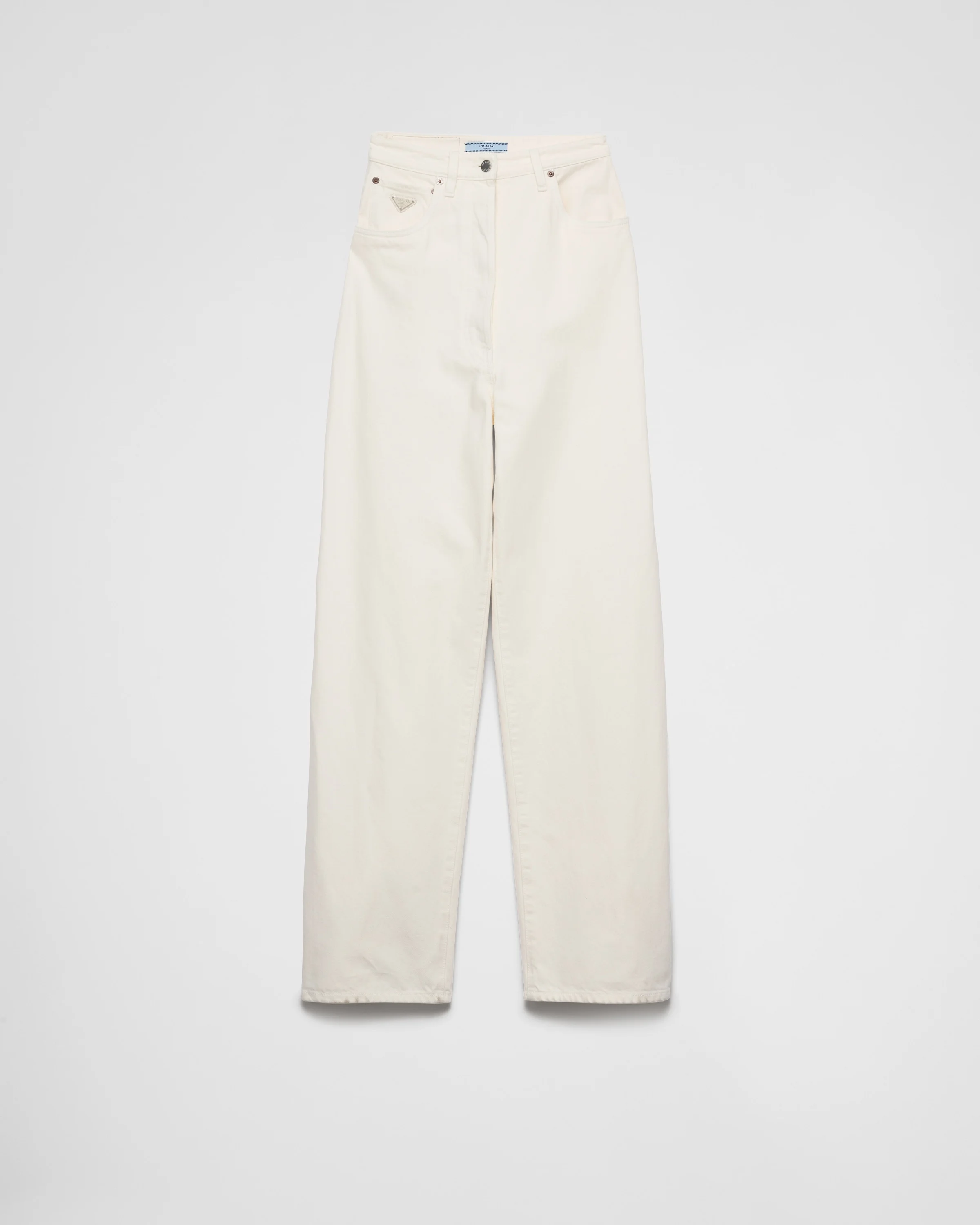 Oversized volumes and curved lines create the silhouette of these jeans with contemporary style. The denim style has a wide-legged design and is decorated with the enameled metal triangle logo. - Product code: GFP519_14LW_F01CD_S_OOO - Washed treatment - Garment dyed - Loose fit - High-rise waist - Hem width: 26 cm, Size: 25 - Button fly - Matching Stitching - Rounded front pockets with coin pocket - Back patch pockets - Total length 126 cm, Size: 25 - Triangle logo - Prada Milano logo label on the back - Imported Height: 124cm MATERIALS Main material: 100% cotton