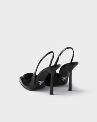 These pointy-toed brushed leather slingbacks with contemporary allure embody sophisticated, feminine elegance. The iconic shape of the triangle logo, reinterpreted as a three-dimensional leather ornament, embellishes the upper and inspires the geometric lines of the heel. - Product code: 1I901M_055_F0002_F_D100 - Screen-printed leather triangle logo - Leather sole with metal lettering logo - Varnished heel, height 100 mm - Imported MATERIALS Main material: Calfskin