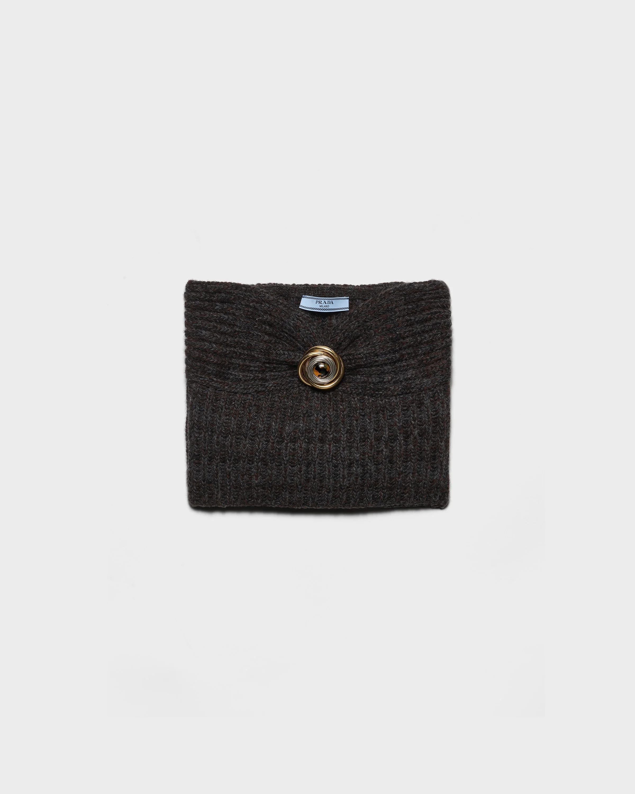 For the Fall/Winter 2025 collection, knitwear is enriched with jewel details in a new dialogue between simplicity and embellishment. Made of a premium wool and cashmere blend, this bandeau top is completed by an elegant brooch. - Product code: P29B93_18B6_F0B70_S_AAO - Ribbed knit - Slim-fit silhouette - Brooch on the front - Imported - The model is 180 cm tall and wears a size 38 Height: 25cm MATERIALS Main material: 30% cashmere 70% virgin wool
