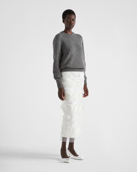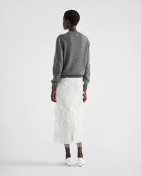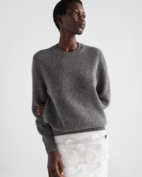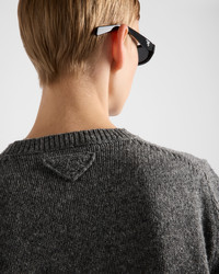 Clean lines with a minimalist cut reinterpret the sleek design of this long-sleeved sweater made of warm wool and cashmere. A wardrobe classic is reinterpreted according to a contemporary language and transformed into a garment featured in unexpected combinations. The soft, relaxed menswear-inspired silhouette is embellished with the triangle logo on the back that completes the garment with an iconic touch. - Product code: P24A3Z_13XA_F0031_S_232 - Long sleeves - Plain knit - Menswear fit - Ribbed knit crew neck - Regular shoulder - Ribbed knit cuffs and hem - Triangle logo - Imported Height: 64cm MATERIALS Main material: 30% cashmere 70% virgin wool