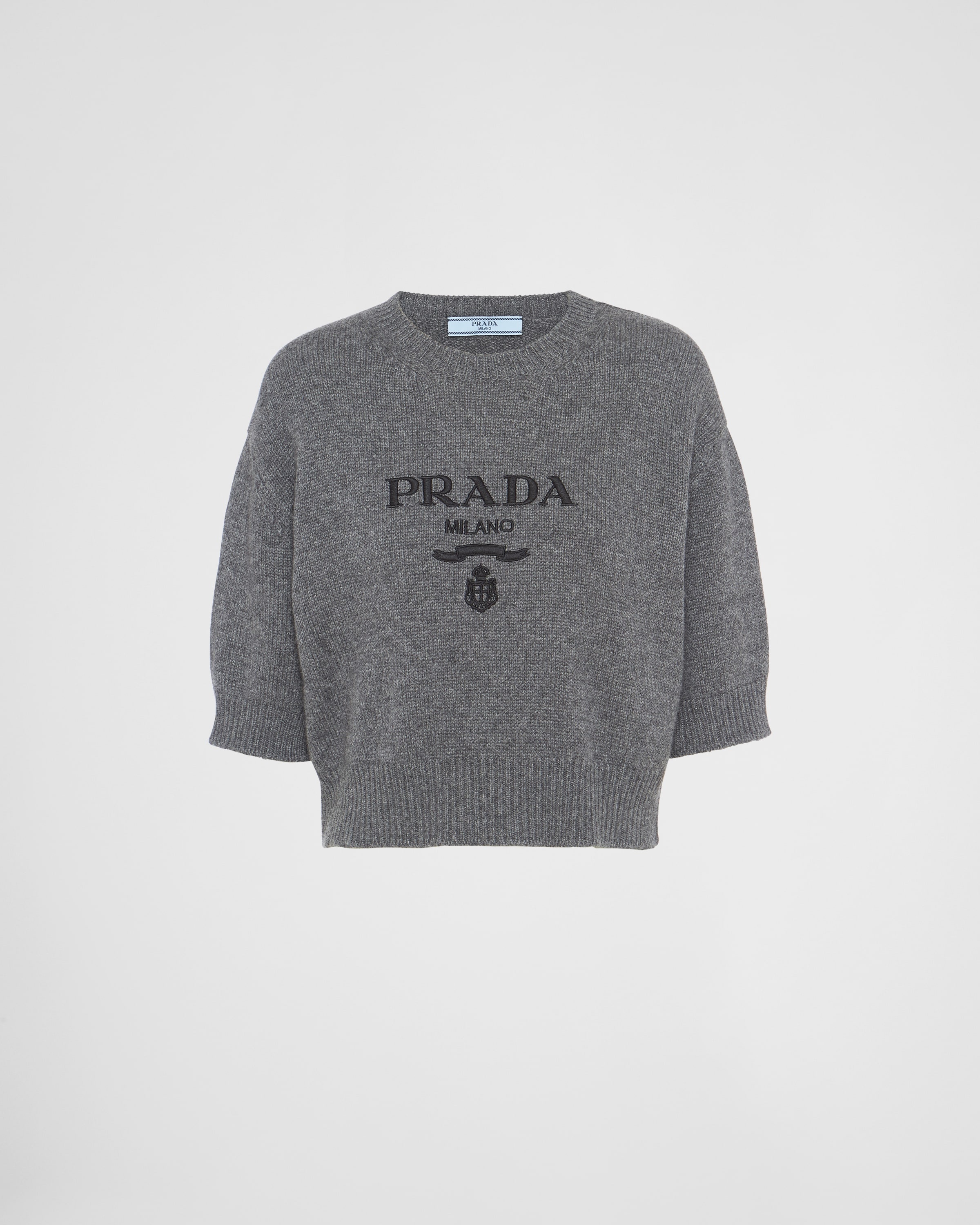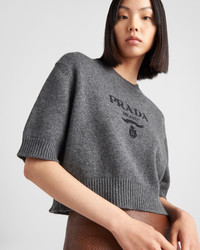 Made of soft wool and cashmere, this sweater with sleek allure is embellished with ribbed knit trim on the hem, sleeves, and neck. The intarsia lettering logo enhances the design of the garment. - Product code: P24Z1U_13LY_F0480_S_231 - Short sleeves - Plain knit - Menswear fit - Ribbed knit crew neck - Drop shoulder - Ribbed knit sleeve trim and hem - Embroidered logo - Imported - The model is 177 cm tall and wears a size 38 Height: 43cm MATERIALS Main material: 30% cashmere 70% virgin wool