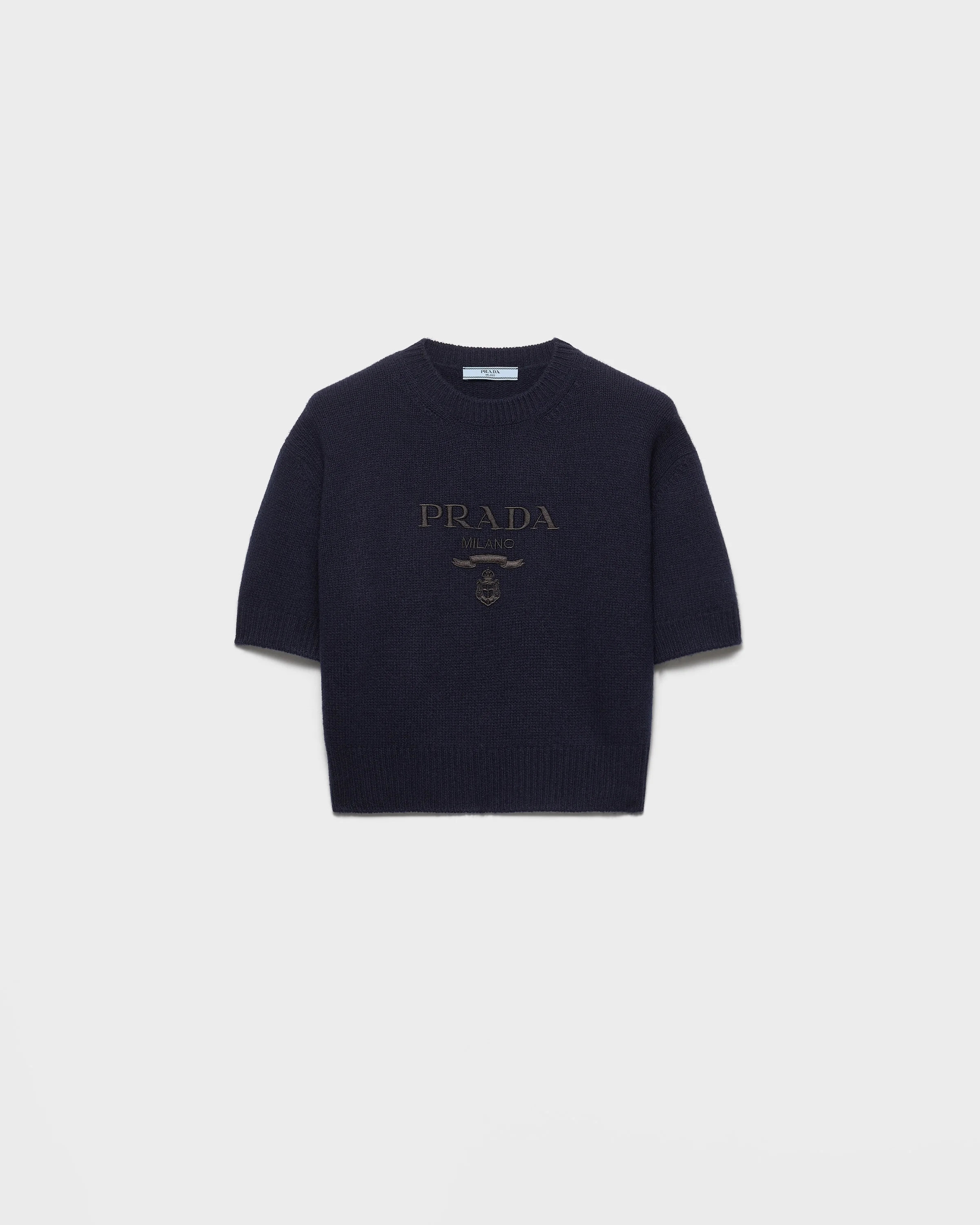 Made of soft wool and cashmere, this sweater with sleek allure is embellished with ribbed knit trim on the hem, sleeves, and neck. The intarsia lettering logo enhances the design of the garment. - Product code: P24Z1U_13LY_F0008_S_231 - Short sleeves - Plain knit - Menswear fit - Ribbed knit crew neck - Drop shoulder - Ribbed knit sleeve trim and hem - Embroidered logo - Imported - The model is 181 cm tall and wears a size 38 Height: 43cm MATERIALS Main material: 30% Cashmere 70% Virgin Wool
