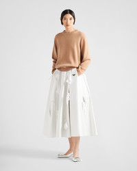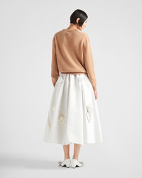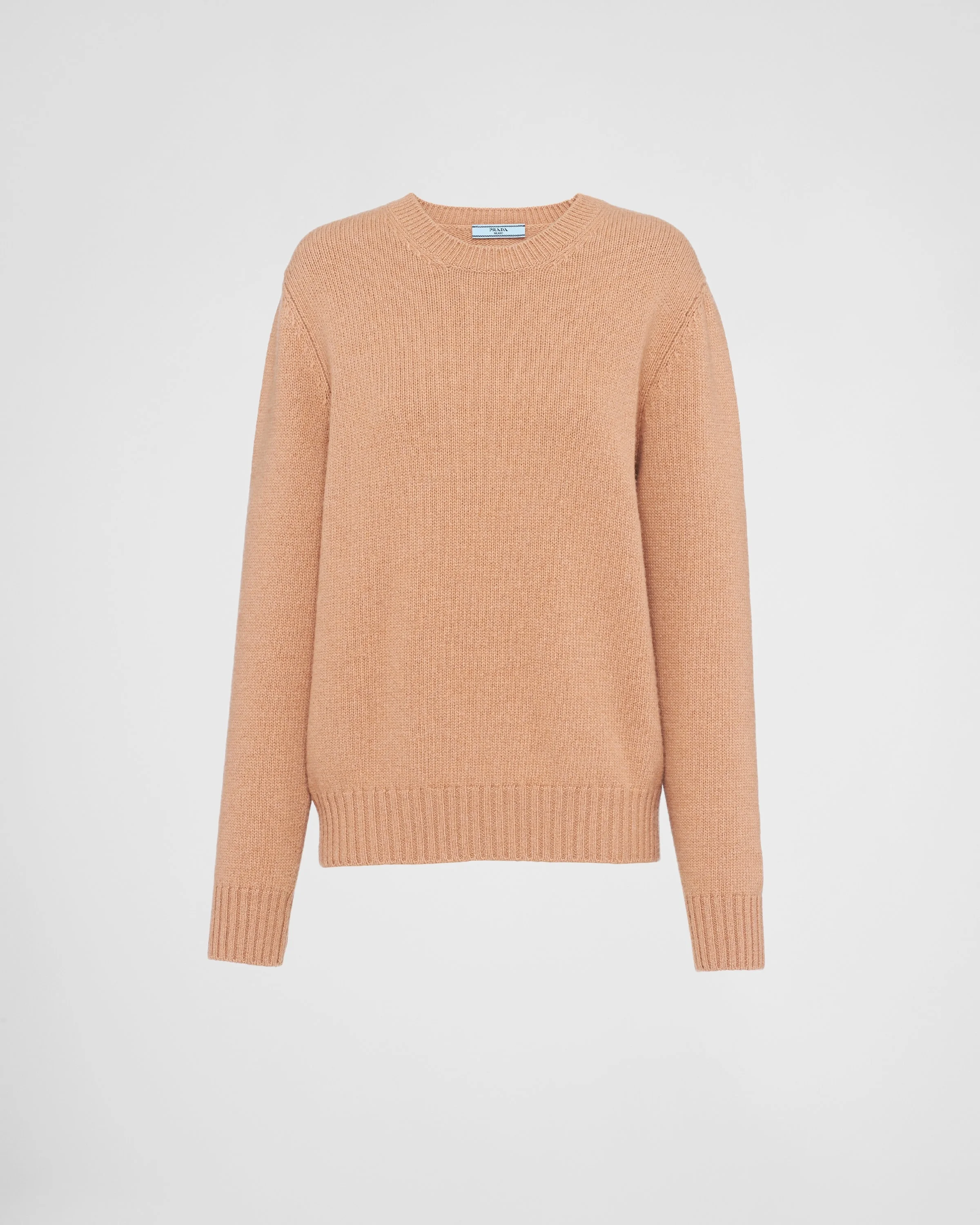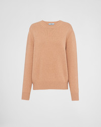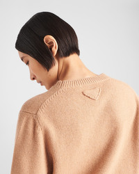 Clean lines with a minimalist cut reinterpret the sleek design of this long-sleeved sweater made of warm wool and cashmere. A wardrobe classic is reinterpreted according to a contemporary language and transformed into a garment featured in unexpected combinations. The soft, relaxed menswear-inspired silhouette is embellished with the triangle logo on the back that completes the garment with an iconic touch. - Product code: P24A3Z_13XA_F0040_S_232 - Long sleeves - Plain knit - Menswear fit - Ribbed knit crew neck - Regular shoulder - Ribbed knit cuffs and hem - Triangle logo - Imported - The model is 177 cm tall and wears a size 38 Height: 64cm MATERIALS Main material: 30% cashmere 70% virgin wool