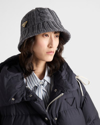 The iconic bucket hat is reinterpreted with a soft texture with wintry allure. Made with a cable-knit pattern, the accessory is decorated with the enameled metal triangle logo. - Product code: 1HC338_2CNW_F0480 - Cable knit - Enameled metal triangle logo - Cotton lining - Imported MATERIALS Fabric