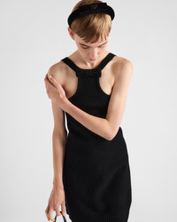 Sleek geometries and romantic details characterized this wool mini-dress, a reinterpretation of a timeless silhouette. The tonal triangle logo completes the design with an iconic touch. - 商品货号: 23A11_16BJ_F0002_S_OOO - Plain knit - Flared fit - Knitted triangle logo - 产品标签信息 高度: 80cm MATERIALS Wool