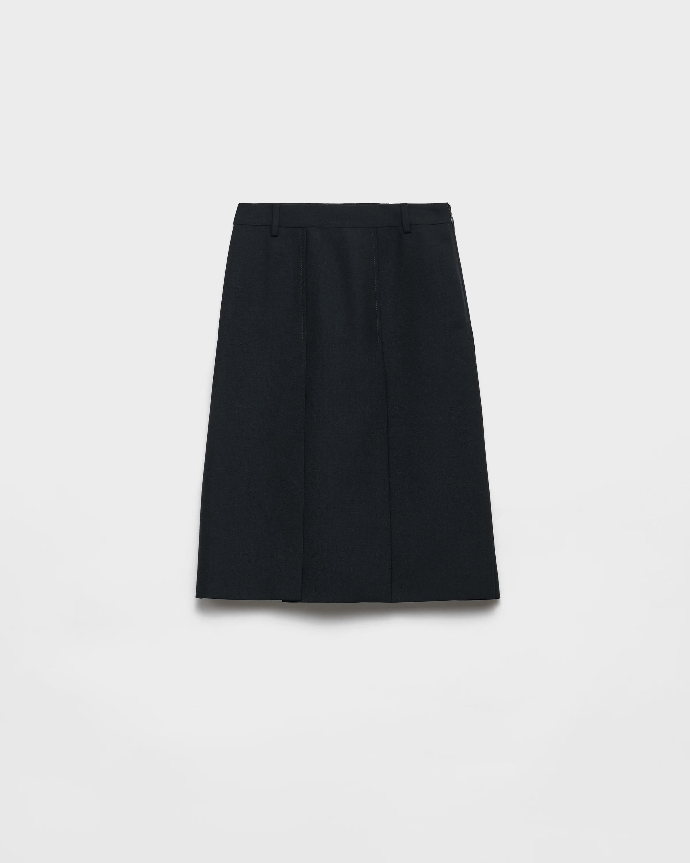 A timeless silhouette with sophisticated allure is reinterpreted in this sleek design withslightly flared lines. The wool skirt is characterized by slits on the front and back that complete the garment with a dynamic touch. - Product code: P117Z_17VZ_F0008_S_OOO - Lined garment - Slit on the front and back - Side zipper closure with hook - Inseam pockets - Imported - The model is 179 cm tall and wears a size 38 Height: 68cm MATERIALS Main material: 100% virgin wool